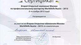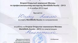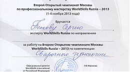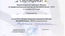 1–4 ноября 2013 года студенты нашего колледжа приняли участие во Втором Открытом чемпионате по профессиональному мастерству «World Skills Russia Москва — 2013» по 4-м компетенциям: