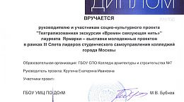 По итогам голосования лидеров студенческого самоуправления 2 наших проекта «Спортивный образовательный центр для детской деревни SOS в Томилино МО» и «Времен связующая нить» — награждены «Золотым сертификатом», дающим право на прохождение обучения в рамках «Школы лидера», «Школы волонтера» ГБОУ УМЦ ПО ДОгМ и на участие в профессиональных образовательных программах Центра дополнительного образования Строительного колледжа № 26.